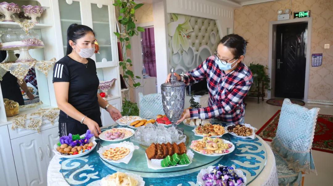 克孜勒加尔村村民沙依拉古丽·索勒塔汗自2018年搬进铁勒克塔拉定居点后,不仅住进了新房子,而且通过每年通过的举办各类培训班获得了烹饪的一技之长。在村“两委”和驻村工作队的引导下,沙依拉古丽·索勒塔汗不等不靠,紧紧抓住布尔津县得天独厚的旅游业带来的大好机遇,凭借一手好厨艺,在自家院内办起牧家乐开始接待游客,参与旅游的短短几个月里她的经济收入也有所突破。下一步,沙依拉古丽·索勒塔汗计划扩大牧家乐的规模,同时加强糕点制作的技艺,以及经营管理策略的学习,为自己的创业路打好基础。