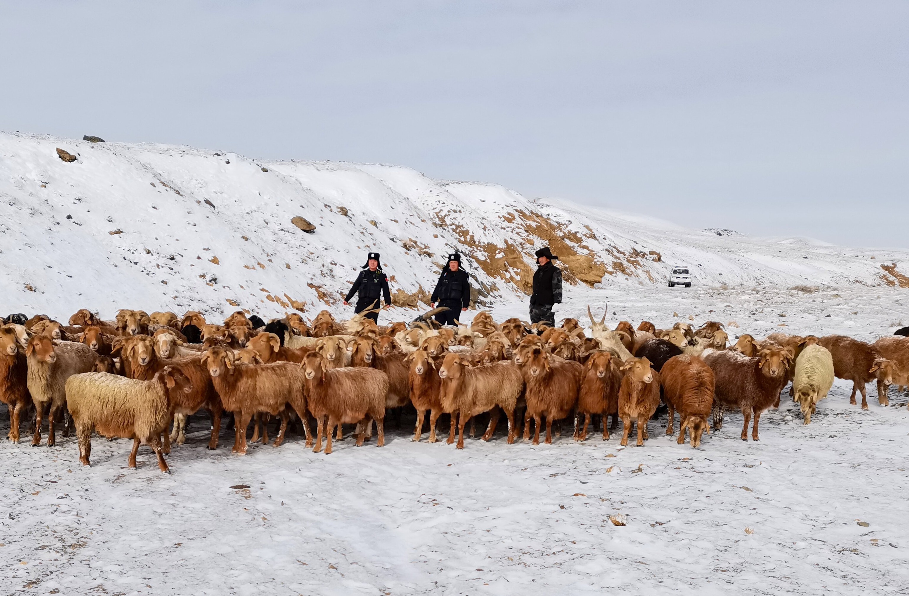 11月15日,新疆出入境边防检查总站阿勒泰边境管理支队库尔特边境派出所民警帮村民找回羊群。通讯员 金磊鑫摄
