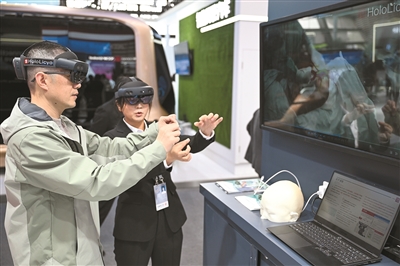 在2024年世界互联网大会“互联网之光”博览会上,参观者体验一款全息智能医学影像系统做手术的过程。新华社记者 蔡湘鑫摄