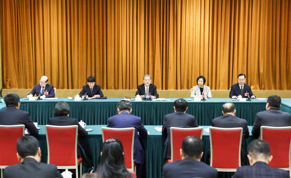 3月6日上午,中共中央政治局常委、全国人大常委会委员长赵乐际参加全国政协十四届三次会议致公党、侨联、对外友好界委员联组会。新华社记者 庞兴雷 摄