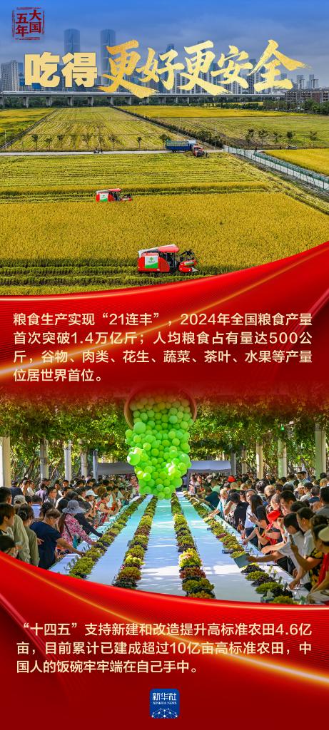 人民对美好生活的向往,就是我们的奋斗目标。“十四五”这五年,群众出行出游更加便捷、医疗养老更有保障、文化生活更为丰富,天更蓝、水更绿、环境更好……经济发展、社会进步、科技创新的成果,正在实打实地转化为群众的获得感、幸福感、安全感。