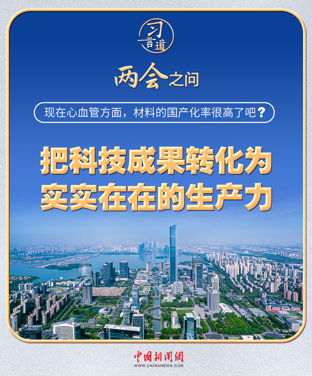 中新网3月7日电 题:习近平的两会之问丨“现在心血管方面,材料的国产化率很高了吧?”