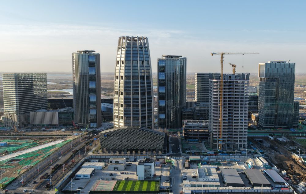 2021年是雄安新区大规模开发建设向纵深发展的关键一年。容东片区是雄安新区开发建设的先行区域,担负着承接北京非首都功能疏解和安置回迁群众的重要任务。这是2021年4月8日拍摄的雄安新区容东片区安置房项目建设现场(无人机照片)。2021年10月,容东第一批安置房开始交付。