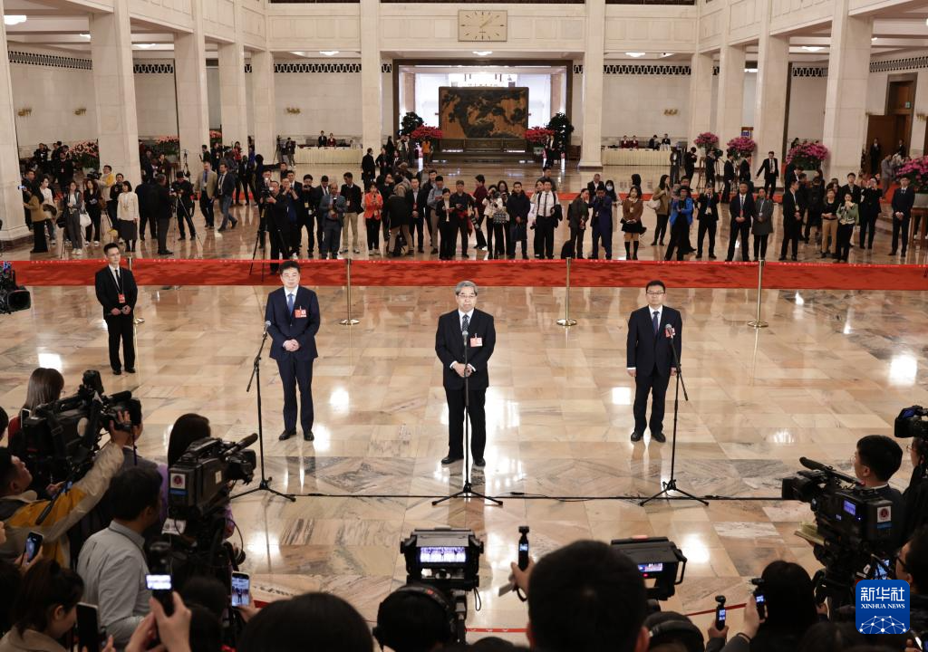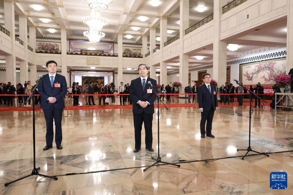 3月4日,全国政协十四届三次会议首场“委员通道”集体采访活动在北京人民大会堂举行。新华社记者 殷刚 摄
