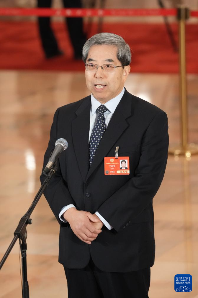 3月4日,全国政协十四届三次会议首场“委员通道”集体采访活动在北京人民大会堂举行。这是全国政协委员马建堂接受媒体采访。新华社记者 周荻潇 摄