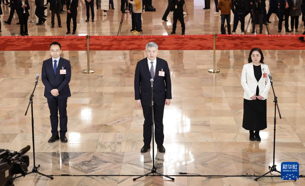 3月4日,全国政协十四届三次会议首场“委员通道”集体采访活动在北京人民大会堂举行。新华社记者 张玉薇 摄