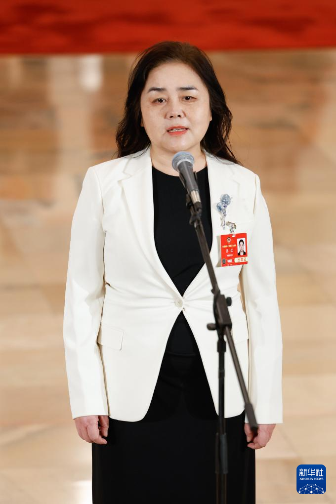 3月4日,全国政协十四届三次会议首场“委员通道”集体采访活动在北京人民大会堂举行。这是全国政协委员乔红接受媒体采访。新华社记者 张玉薇 摄