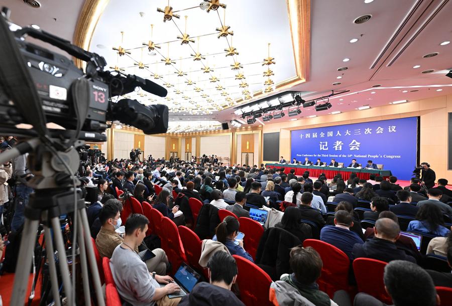 2025年3月6日,十四届全国人大三次会议在北京梅地亚中心新闻发布厅举行记者会。新华社记者 胥冰洁 摄