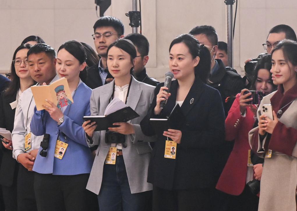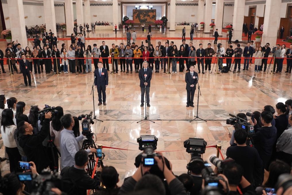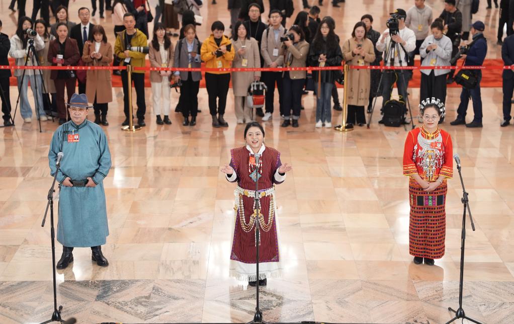 3月10日,全国政协十四届三次会议第三场“委员通道”集体采访活动在北京人民大会堂举行。新华社记者 才扬 摄