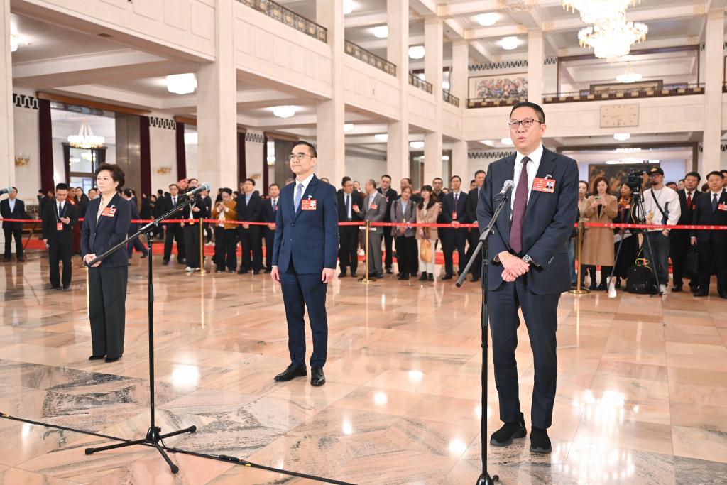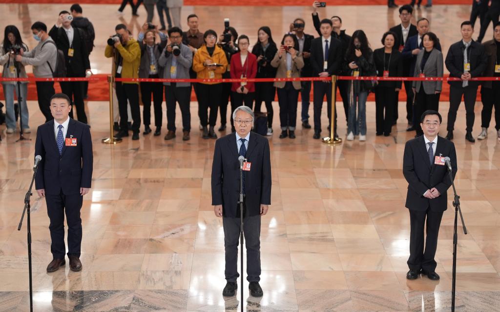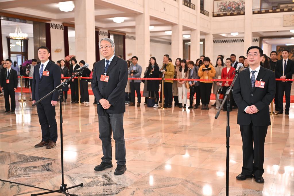 3月10日,全国政协十四届三次会议第三场“委员通道”集体采访活动在北京人民大会堂举行。新华社记者 金良快 摄