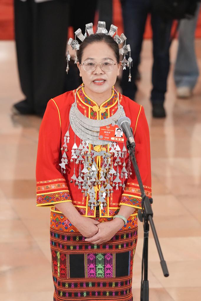 3月10日,全国政协十四届三次会议第三场“委员通道”集体采访活动在北京人民大会堂举行。这是全国政协委员黄丽萍接受媒体采访。新华社记者 才扬 摄
