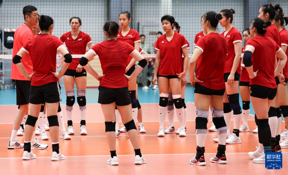 4月28日,中国女排队员在公开训练课上。新华社记者 韩岩 摄