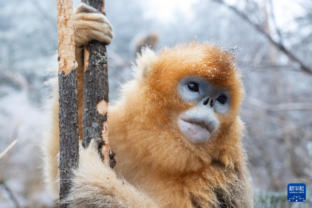 1月19日,一只金丝猴在神农架国家公园大龙潭金丝猴野外研究基地树枝上休憩。新华社记者 杜子璇 摄