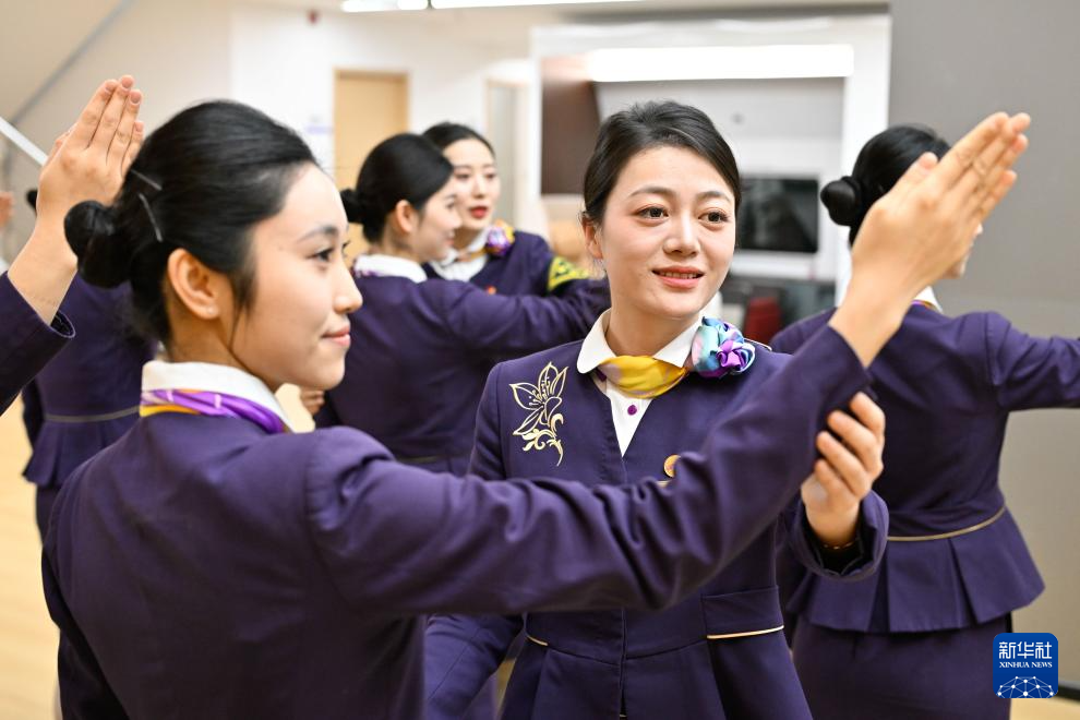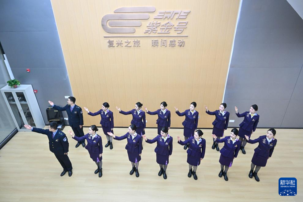 1月28日,中国铁路上海局集团有限公司南京客运段高铁二车队乘务人员进行服务礼仪培训。新华社记者 季春鹏 摄