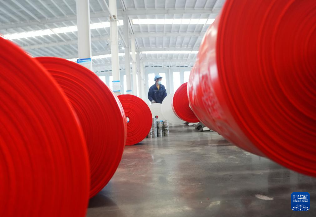 2月24日,在湖南省衡山县衡山高新技术产业开发区,荣宸塑业有限公司的员工在生产线上工作。新华社发(曹正平摄)