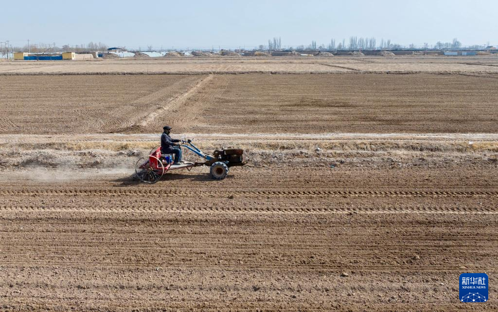 近日,宁夏银川市贺兰县的农民积极开展小麦春耕备耕,田间地头一片繁忙的景象。