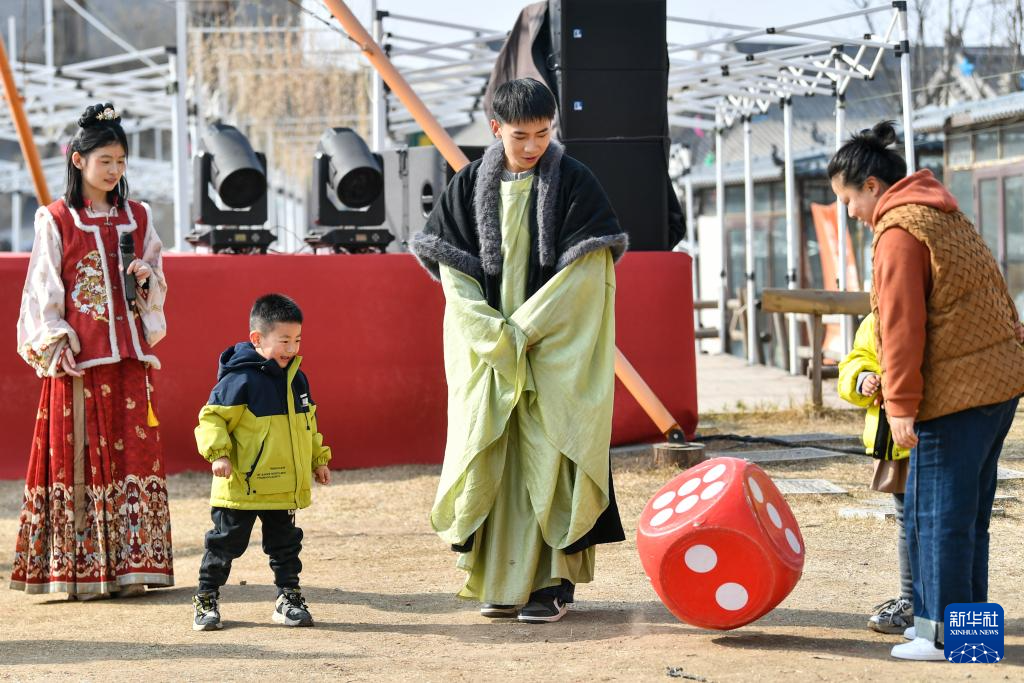 2月25日,游客在山西太原古县城参加趣味活动。新华社记者 曹阳 摄