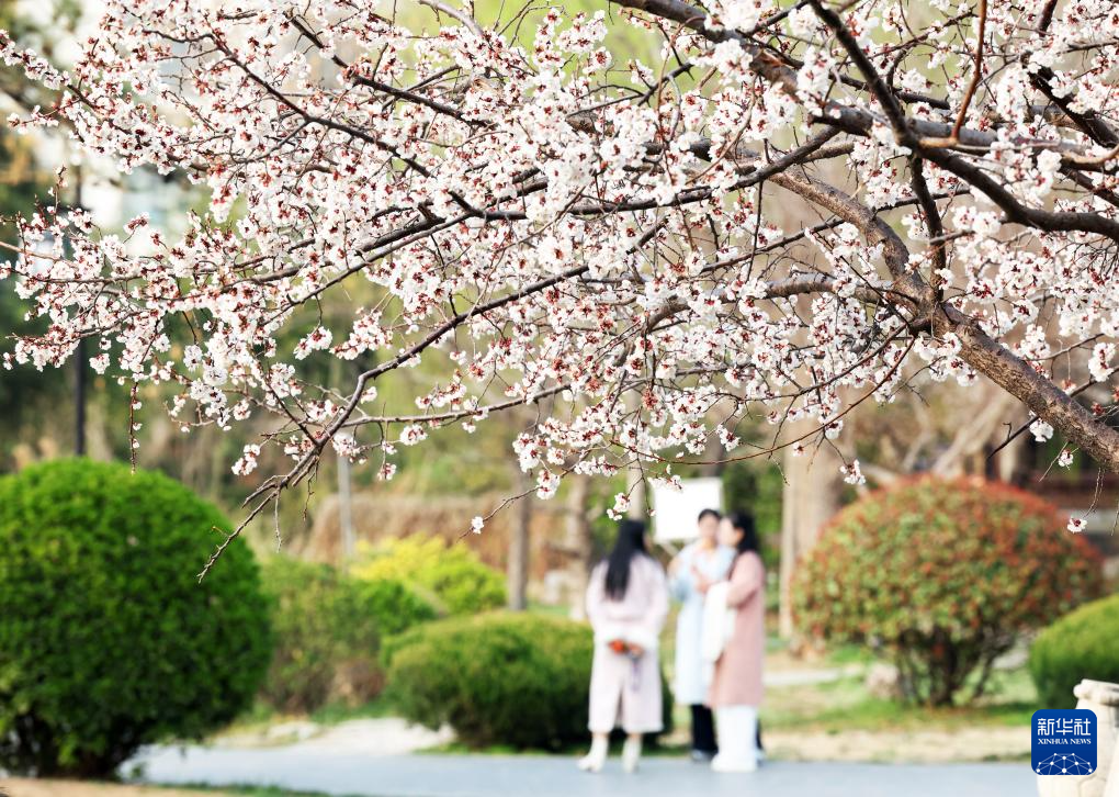 3月22日,游人在北京三里河公园拍摄。新华社记者 陈晔华 摄