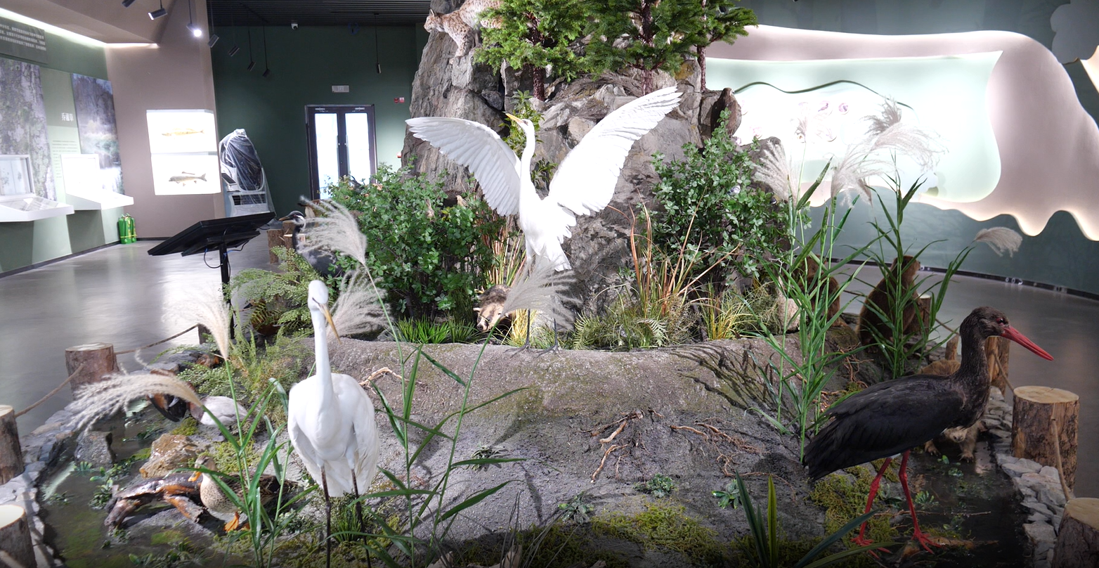 新疆布尔根河狸国家级自然保护区管理局局长贺承斌说:“新疆布尔根河狸国家级自然保护区科普馆,2023年正式完工,馆内收藏了100种野生植物和64种动物的标本。作为国内唯一以保护蒙新河狸为主的国家级自然保护区,这里的蒙新河狸数量占全国总数的23%,目前稳定在161至182只左右。科普馆全年免费向公众开放,旨在提升群众的生态环保意识和野生动物保护意识。”