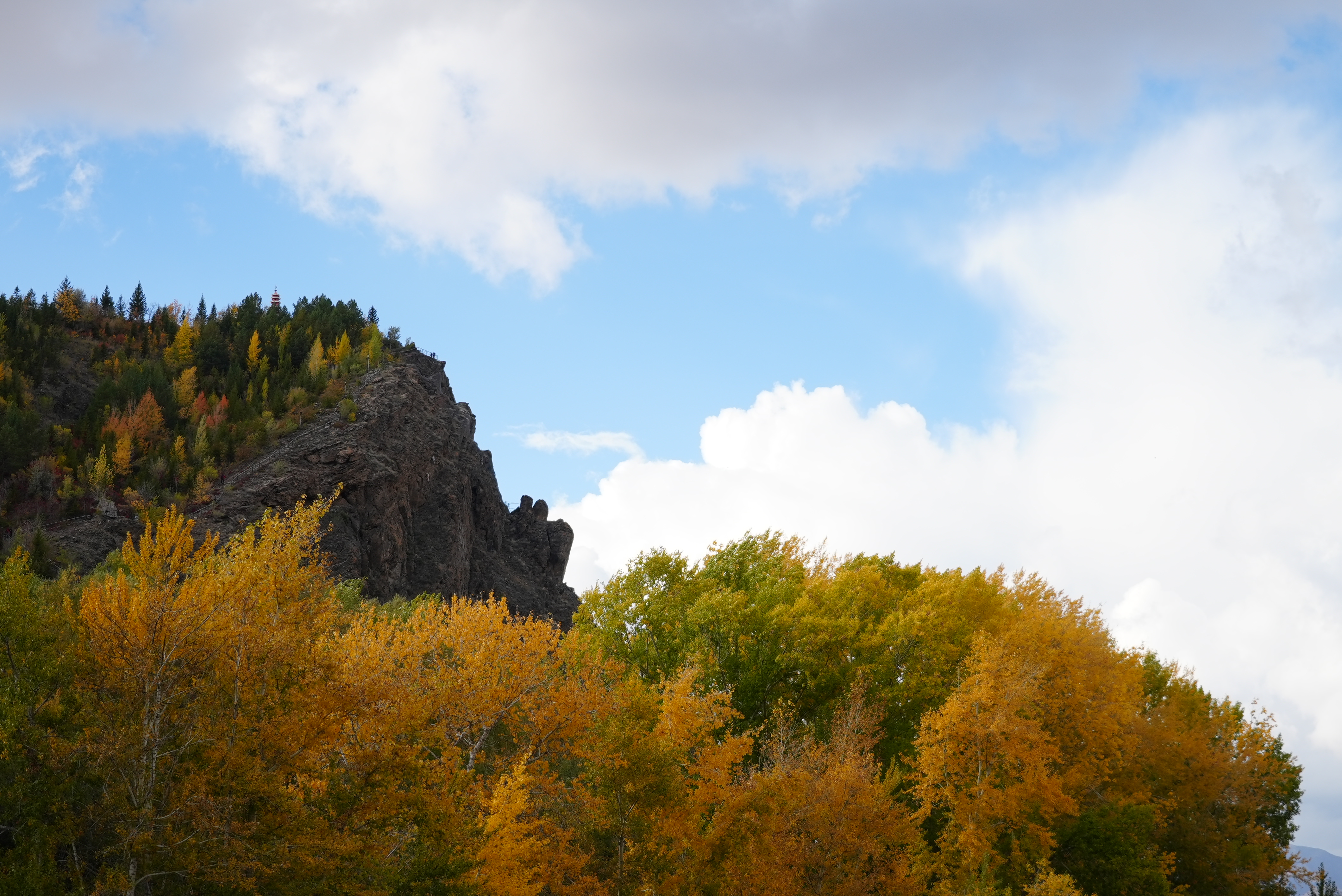 阿勒泰新闻网-阿勒泰地区融媒体中心(记者 代维利)国庆节将至,阿勒泰市驼峰景区迎来最美秋景。这座矗立在中心金山广场西北角的山峰,披上金黄与赤红交织的秋装,以其独特的自然景观吸引着游客前来观赏。