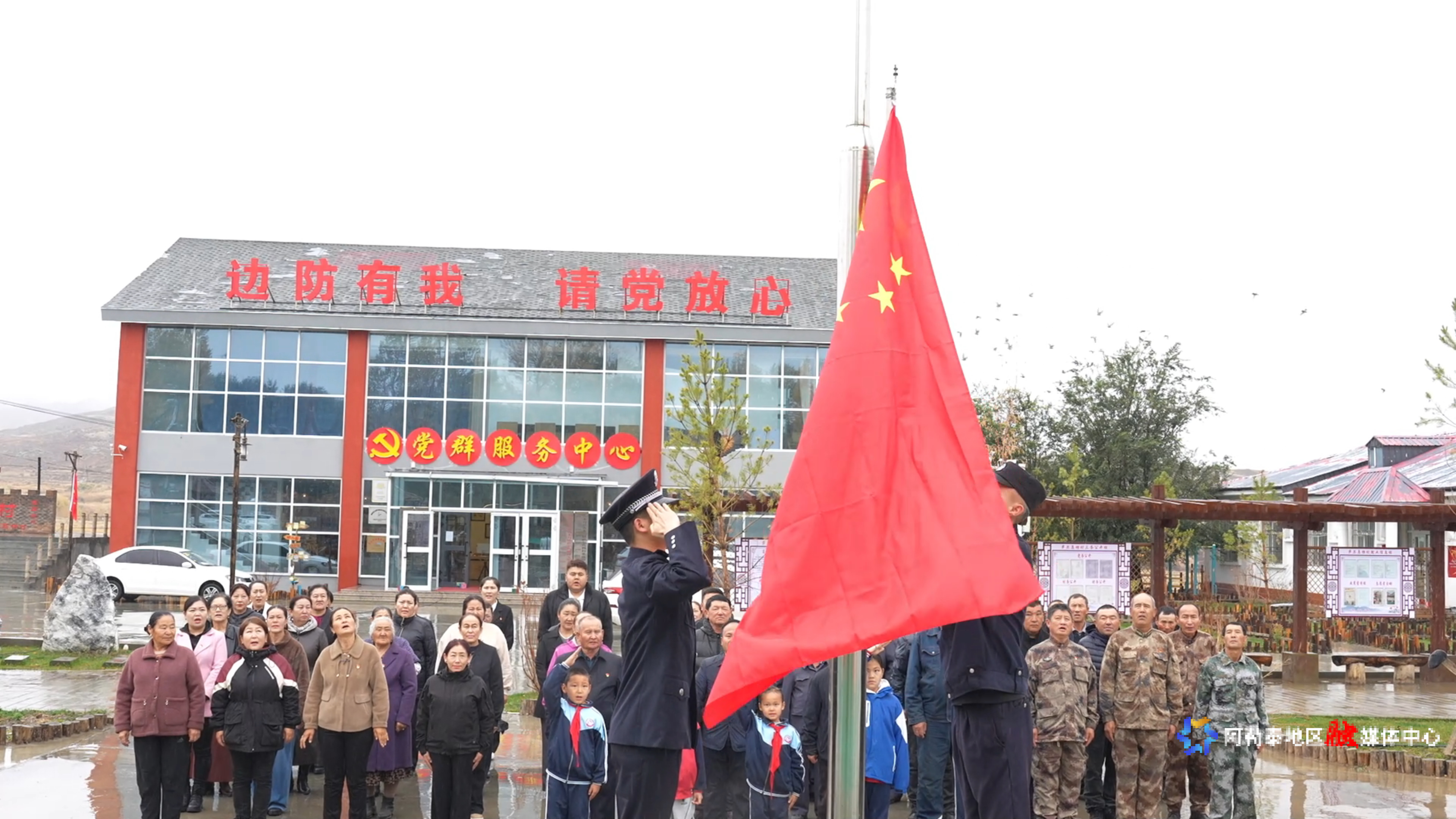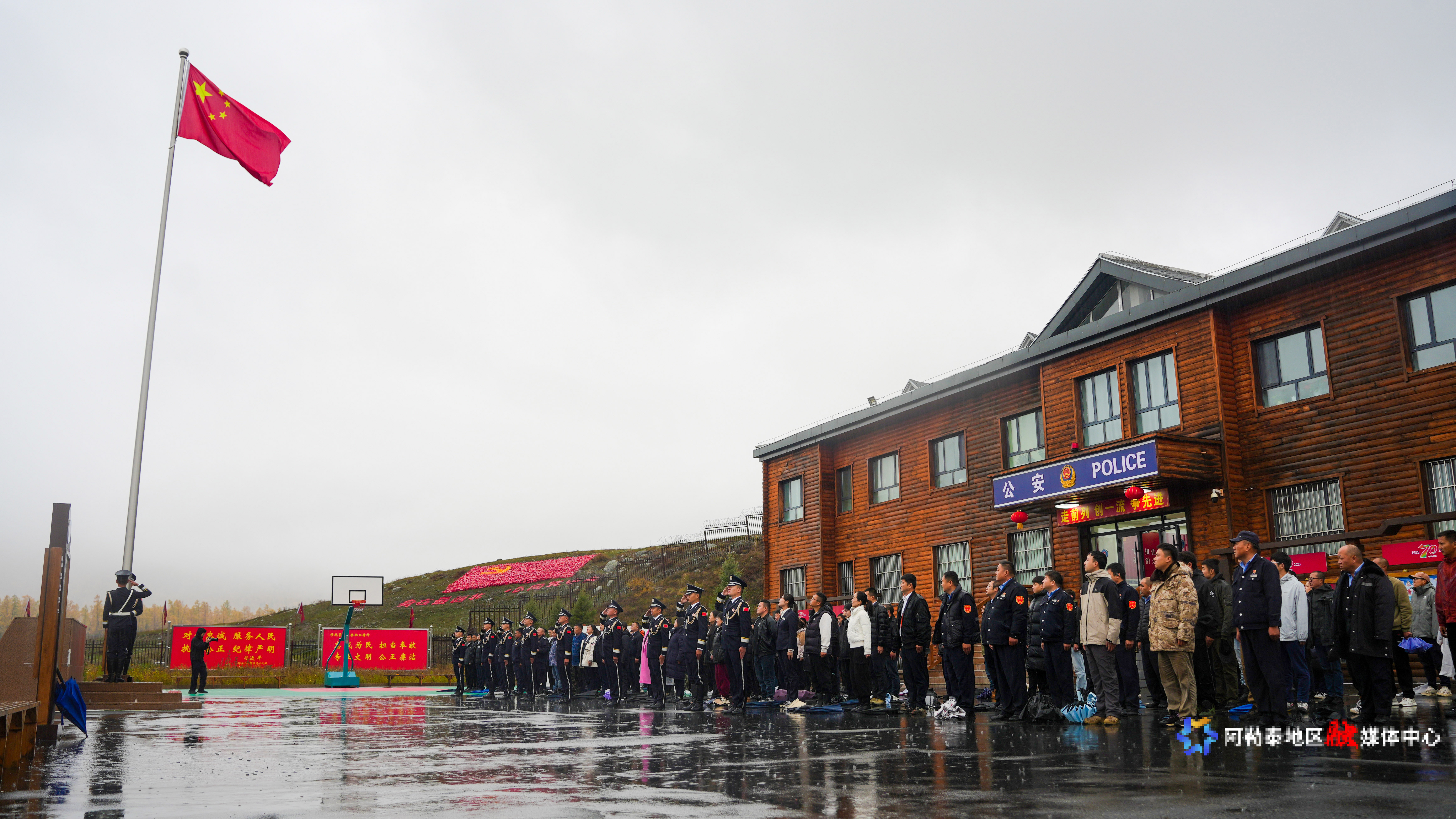 10月1日,阿勒泰边境管理支队喀纳斯边境派出所举行“边疆迎国庆”升旗仪式,辖区经营户、游客等从四面八方赶来,汇聚在喀纳斯边境派出所,共同庆祝新中国成立76周年。