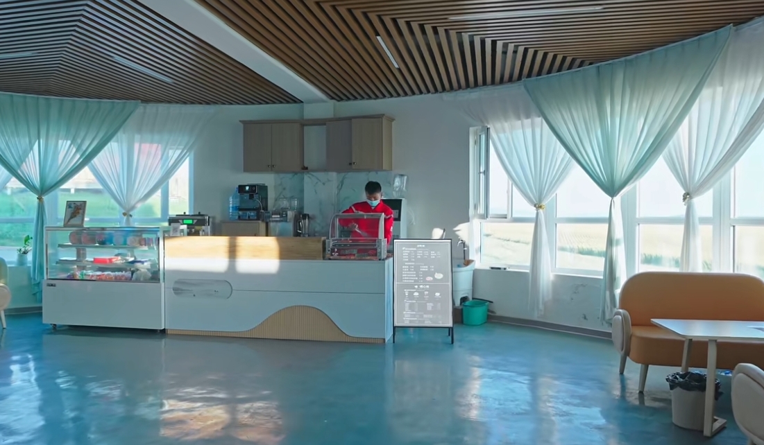 更让人眼前一亮的,是党支部联合农投公司打造的19公里农旅观光线路。中草药花海随风摇曳,马铃薯花田铺就紫色地毯,本草探源体验馆里,游客正听着讲解员介绍本地作物;一楼的展示墙上,用“AI+动漫”还原的产业工人、劳务经纪人故事鲜活生动,叶力米斯·赛肯从“风滚草”般的零工,成长为带动60余名脱贫户就业的劳务经纪人,他的蜕变故事,成为很多人奋斗的榜样。