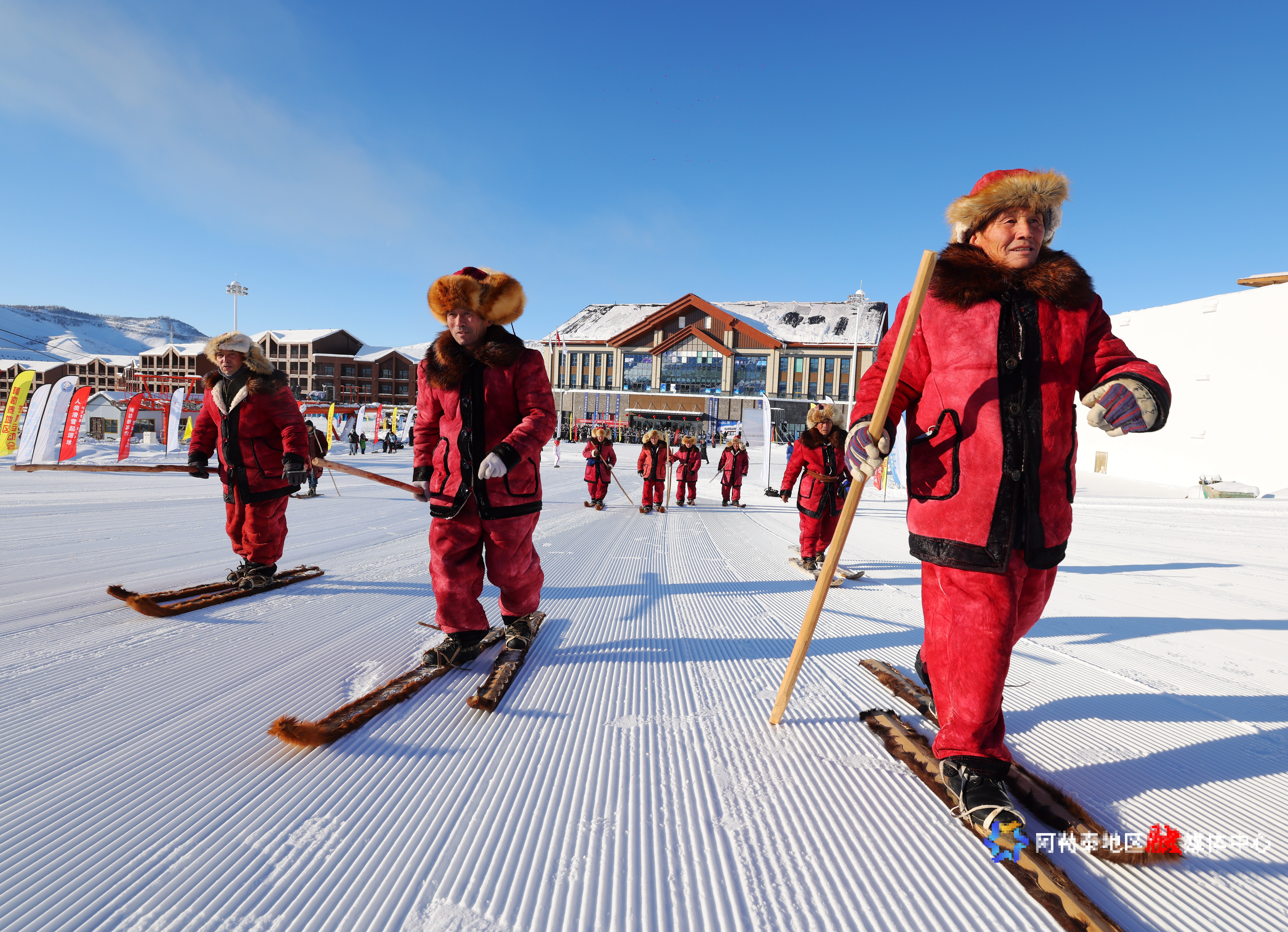 2023年1月16日,将军山国际滑雪度假区晴空万里,自治区第一届冬季运动会“卡宾杯”古老毛皮滑雪交流赛在这里正式拉开帷幕。