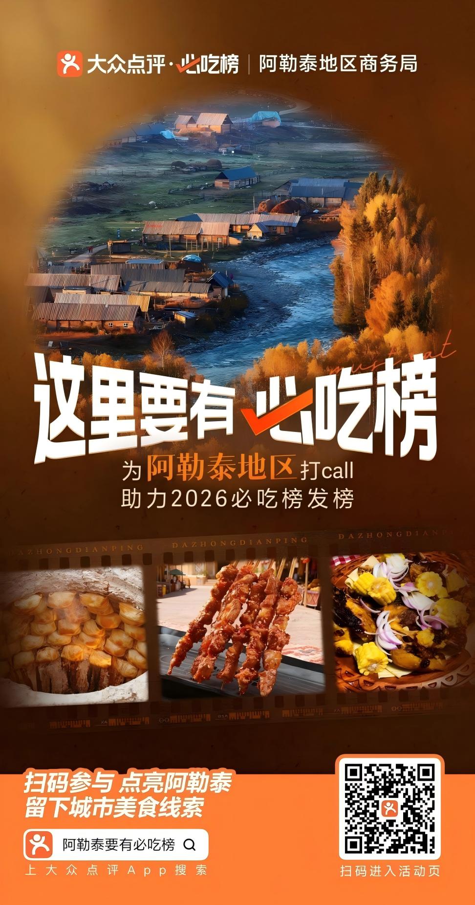阿勒泰新闻网-阿勒泰地区融媒体中心(实习记者 马海娜·马格尔)即日起,阿勒泰的美食爱好者们多了一项新任务:动动手指,为心仪的家乡味道助力!近日,记者从地区商务局获悉,该局联合大众点评平台推出“这里要有必吃榜”主题活动,邀请居民、游客和美食达人共同挖掘、展示阿勒泰的地道美食线索,为阿勒泰冲刺2026年必吃榜汇聚人气、积蓄能量。