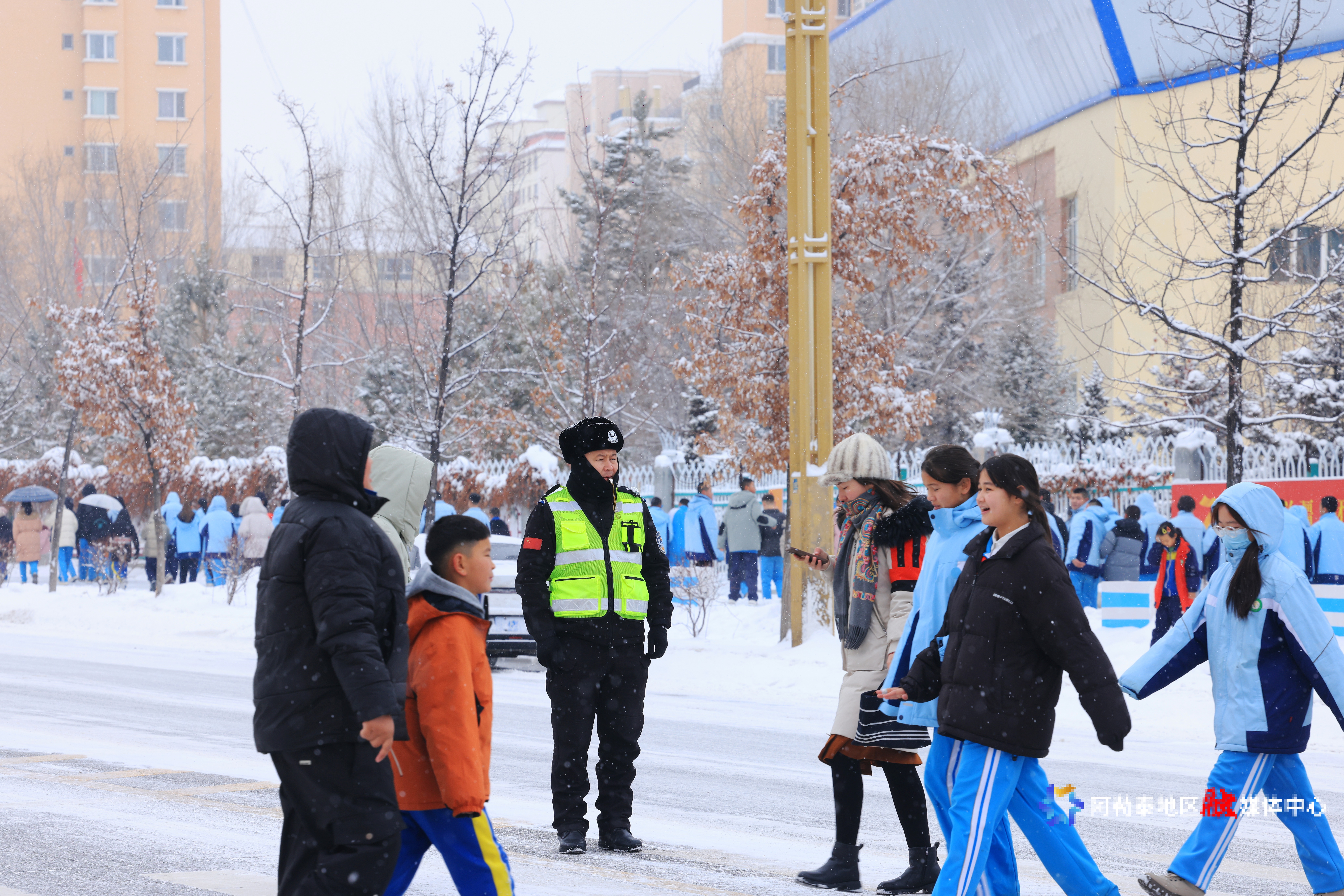 当日,阿勒泰市出现降雪天气,给学生出行带来安全隐患。为保障校园周边道路交通安全畅通,阿勒泰市公安局交通管理大队迅速启动恶劣天气应急预案,在各中小学、幼儿园门口及周边路段增设护学岗,全力守护学生出行安全。