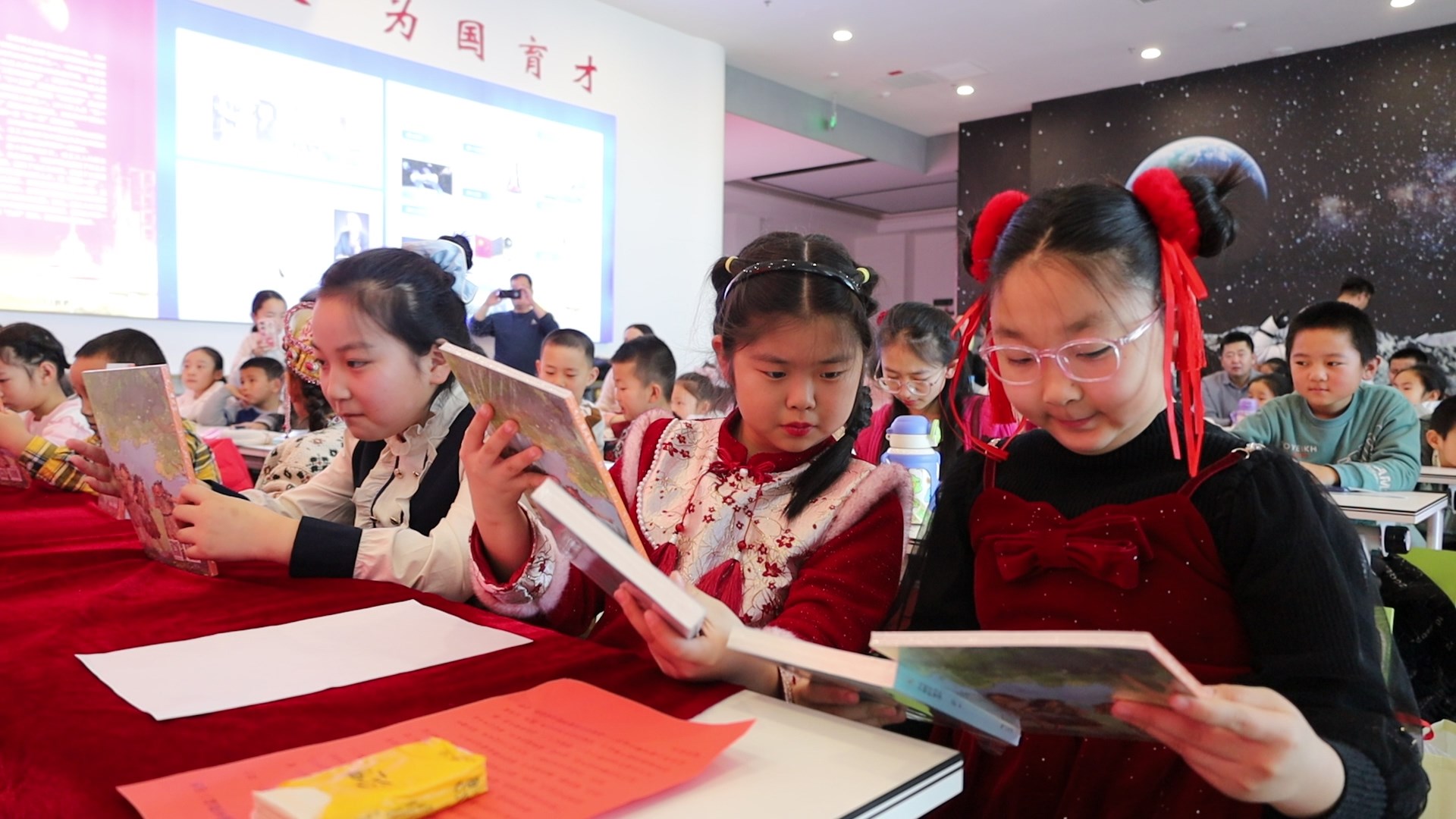 “星启新年·声动苍穹”欢庆元旦活动现场,学生收到天文馆赠送《通天洞》《风雅阿勒泰》读物。通讯员 王瑞坤摄