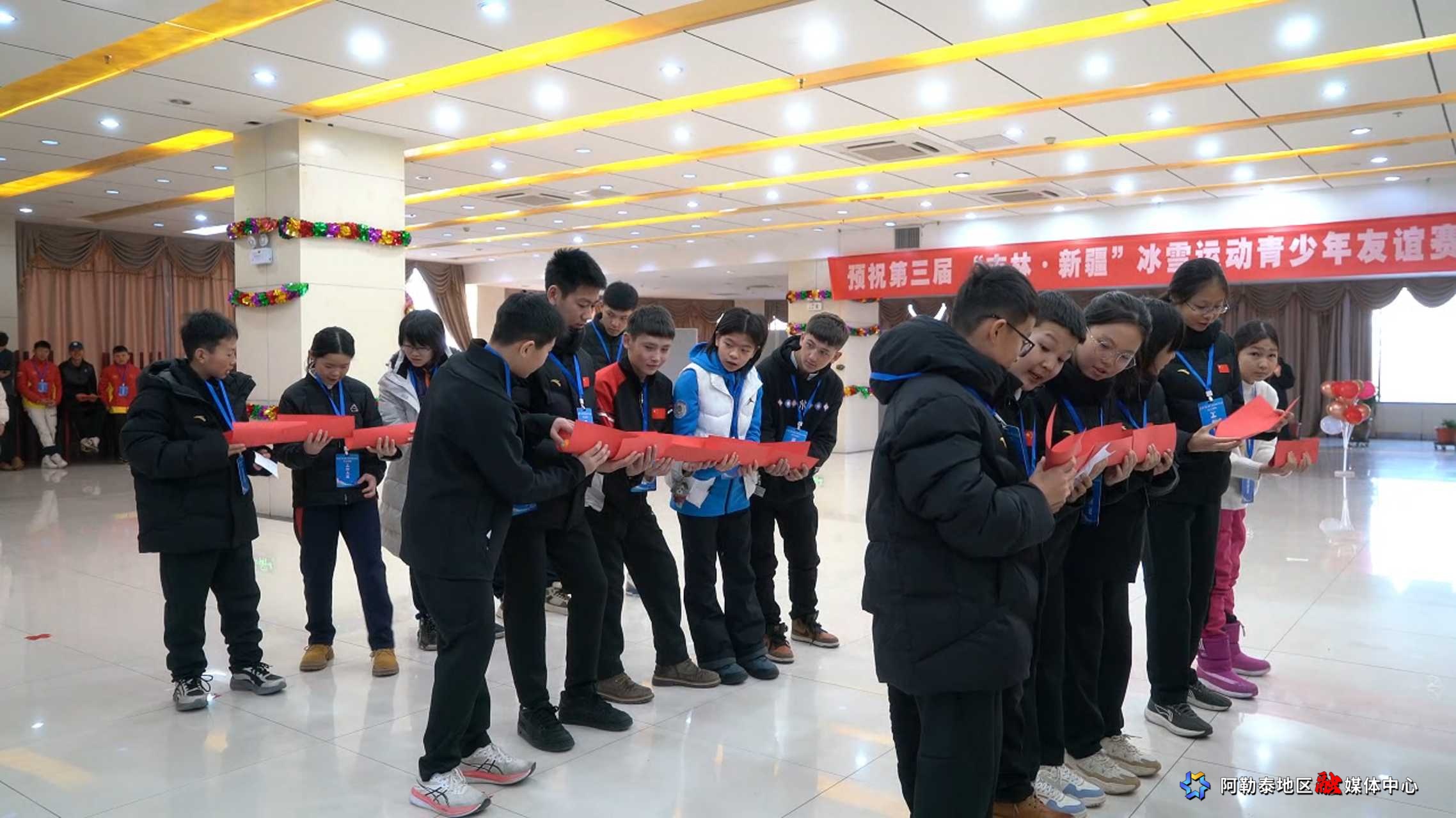 阿勒泰新闻网-阿勒泰地区融媒体中心(记者 董世菊 实习记者 巴丽江· 毛里别克)1月6日,第三届“吉林—新疆”冰雪运动青少年友谊赛开幕式在阿勒泰市举行。吉林和新疆的70余名青少年代表齐聚一堂,以体育为纽带、以友谊为桥梁,共同开启这场跨越千里的青春盛会,在交往交流交融中铸牢中华民族共同体意识。