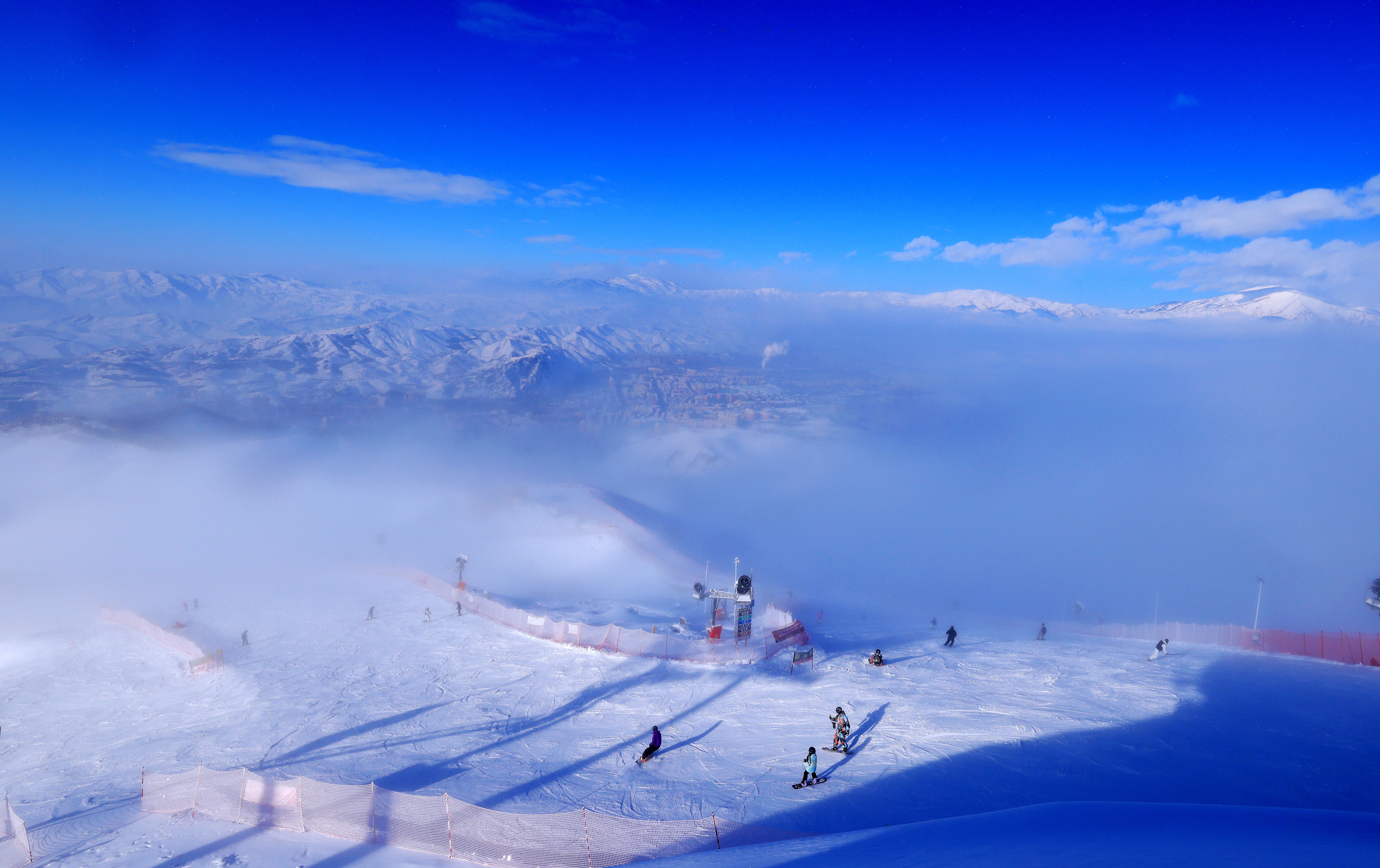 2026年1月8日,阿勒泰将军山国际滑雪度假区云海绕山城,景美如画,引滑雪爱好者奔赴打卡。