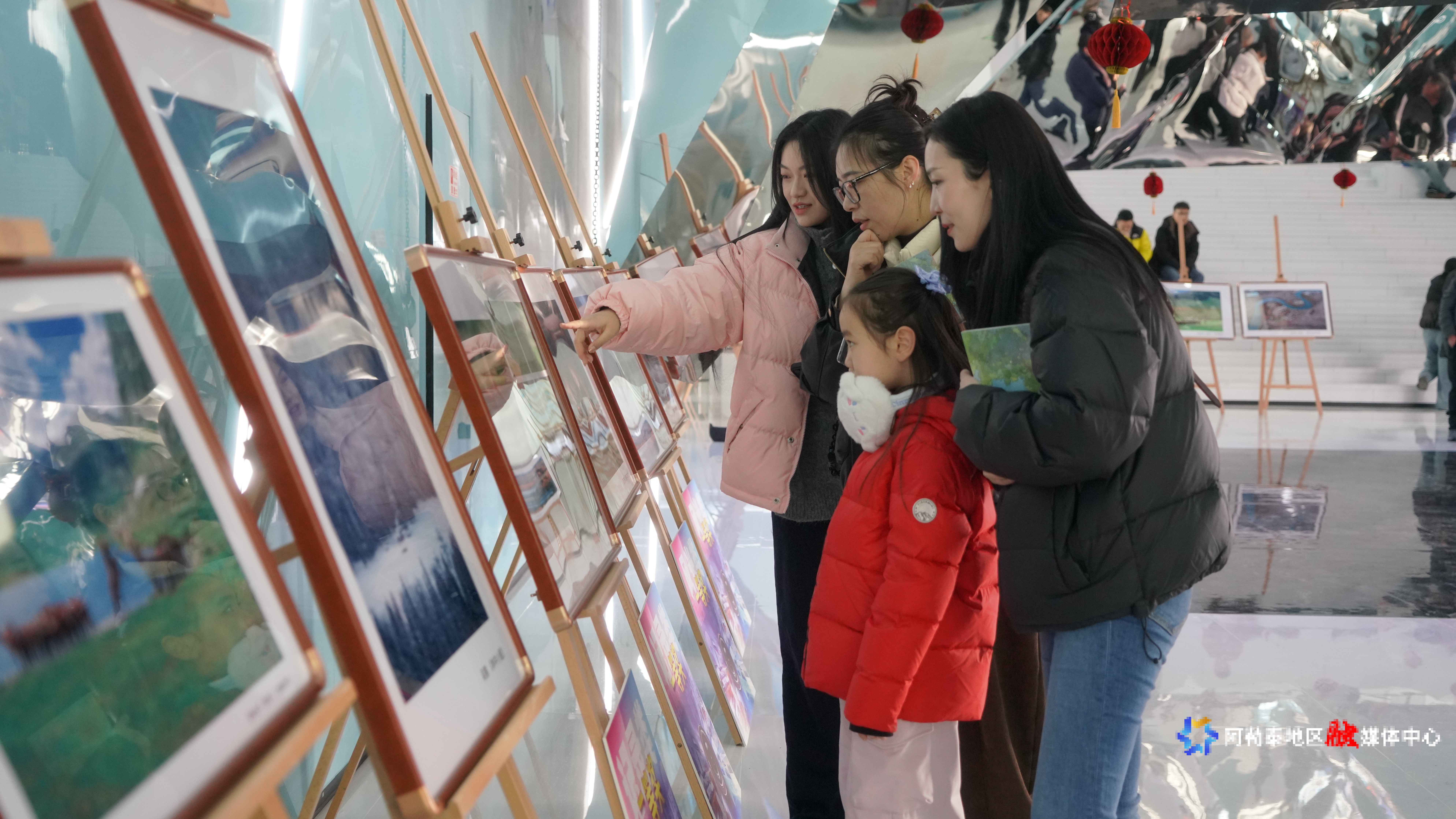 2月11日,参观人员共同欣赏“我的阿勒泰·冰雪视觉展”摄影大赛获奖及入展作品。
