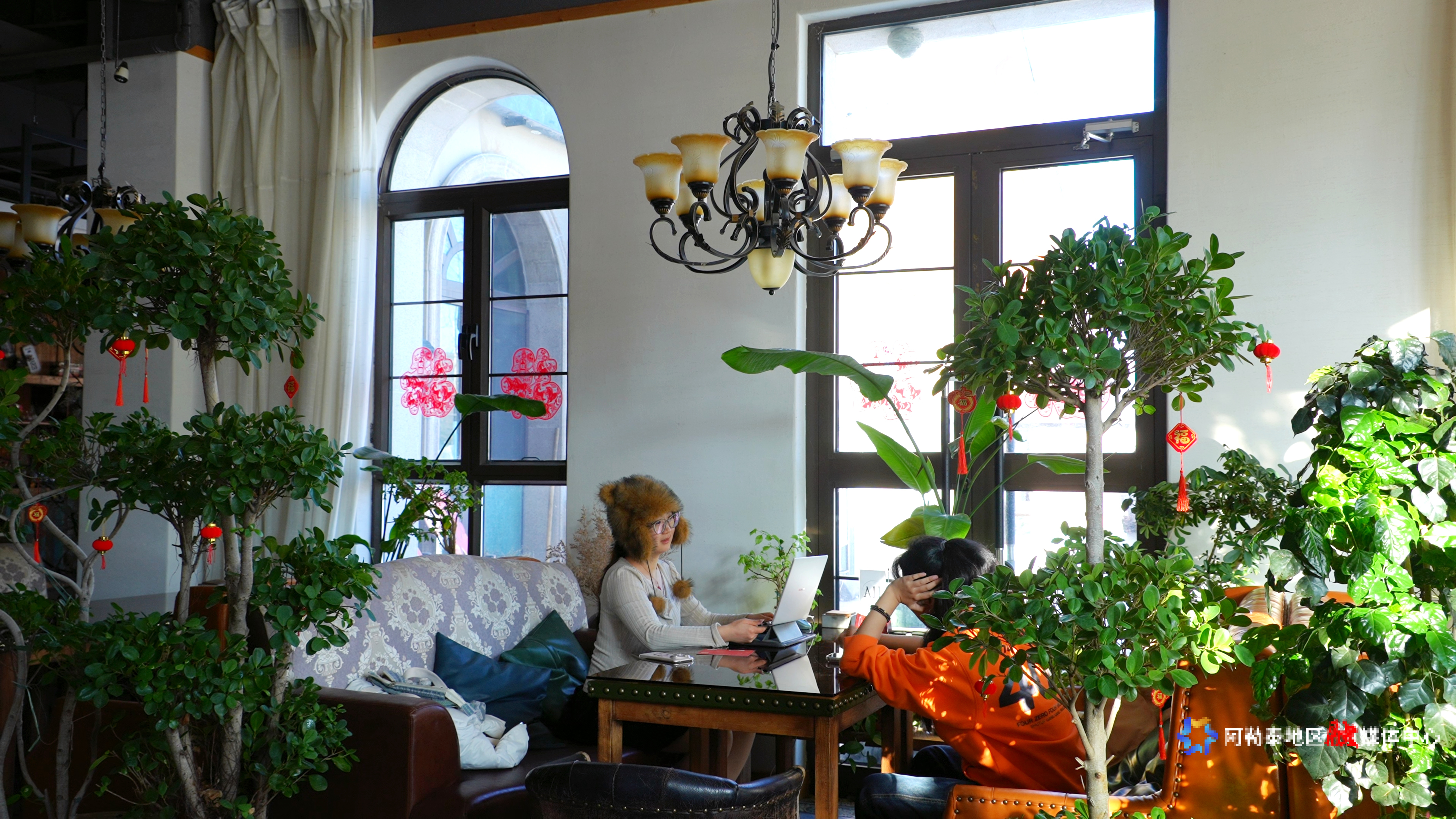 阿勒泰市某餐馆随处可见浓郁的节日元素。实习记者 马海娜·马格尔 摄