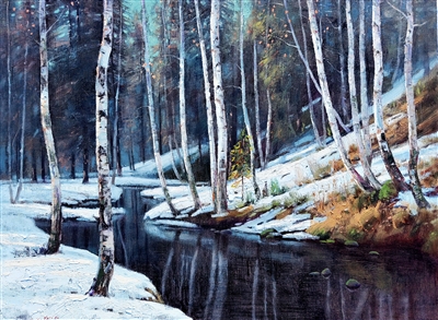 冬日,马儿踏雪而行,蹄声惊落枝头积雪,白桦树的影子在雪地上长长铺展,像时光的银色琴弦。牧人骑马穿林,马鬃扫过枝桠,雪片簌簌落下,缀于毡帽,也落在马鞍的皮绳上。