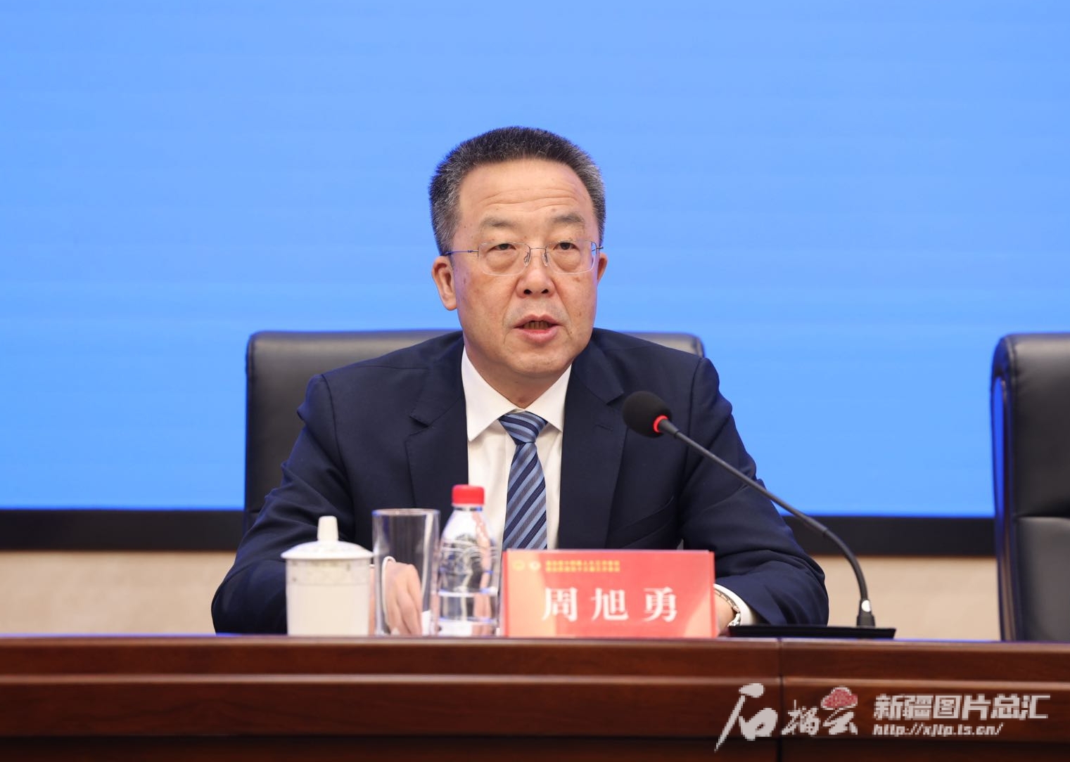 1月20日,2025新疆两会第三场新闻发布会举行。图为自治区人民政府新闻发言人,自治区人民政府秘书长、办公厅主任周旭勇介绍相关情况。天山网-新疆日报记者 李瑞摄