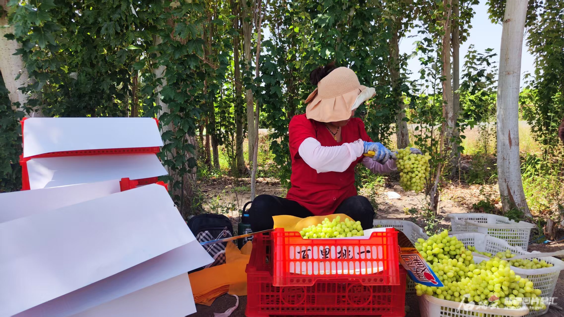 2023年8月,吐鲁番市葡萄上市,果农给葡萄装箱。天山网-新疆日报记者 张磊摄