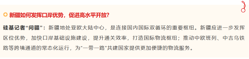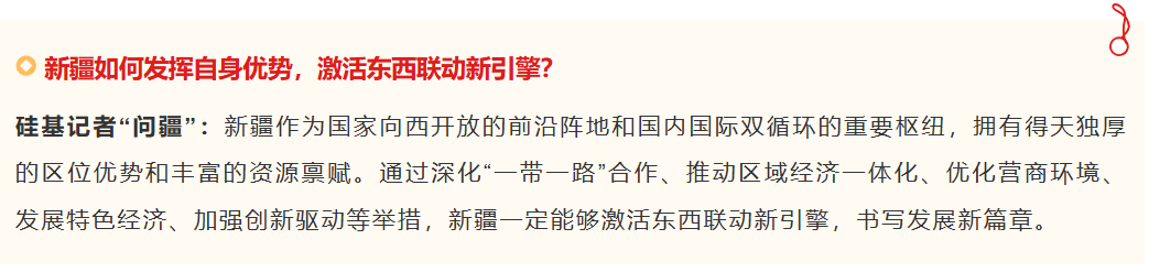 作为丝绸之路经济带核心区, 新疆在对内对外开放中具有独特的区位优势和战略地位。新疆如何进一步拓展高水平对内对外开放?实现国内国际市场相互关联、相互促进?全国两会时间,新疆日报社(集团)基于DeepSeek大模型自主研发的 “问疆”AI智能体平台正式上线运行,看硅基记者“问疆”和代表委员如何对这些问题深度作答。
