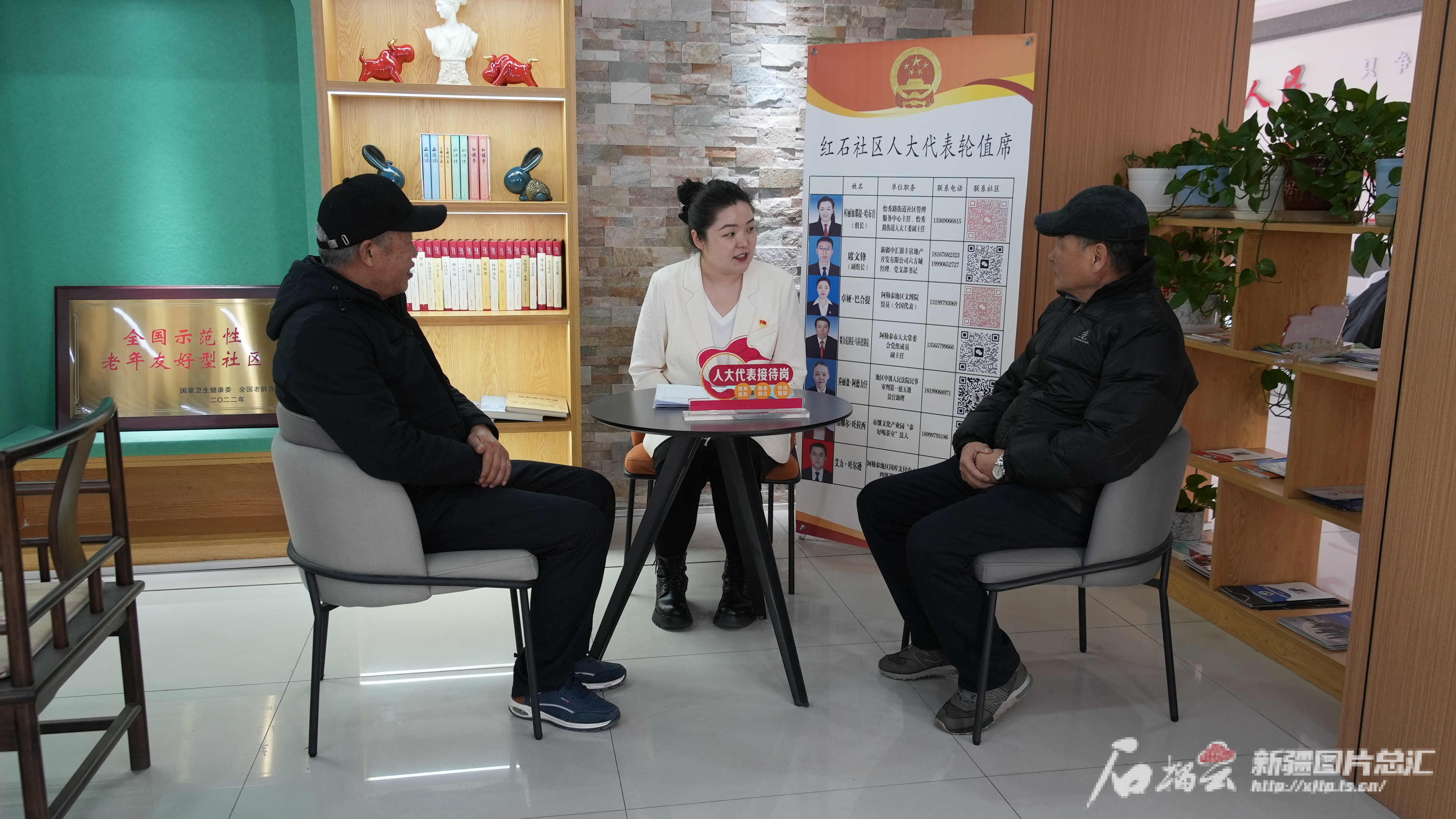 2025年2月20日,在疆全国人大代表、阿勒泰地区文博院(博物馆)馆员卓娅·巴合提在阿勒泰市恰秀路街道红石社区与群众交流。代维利摄