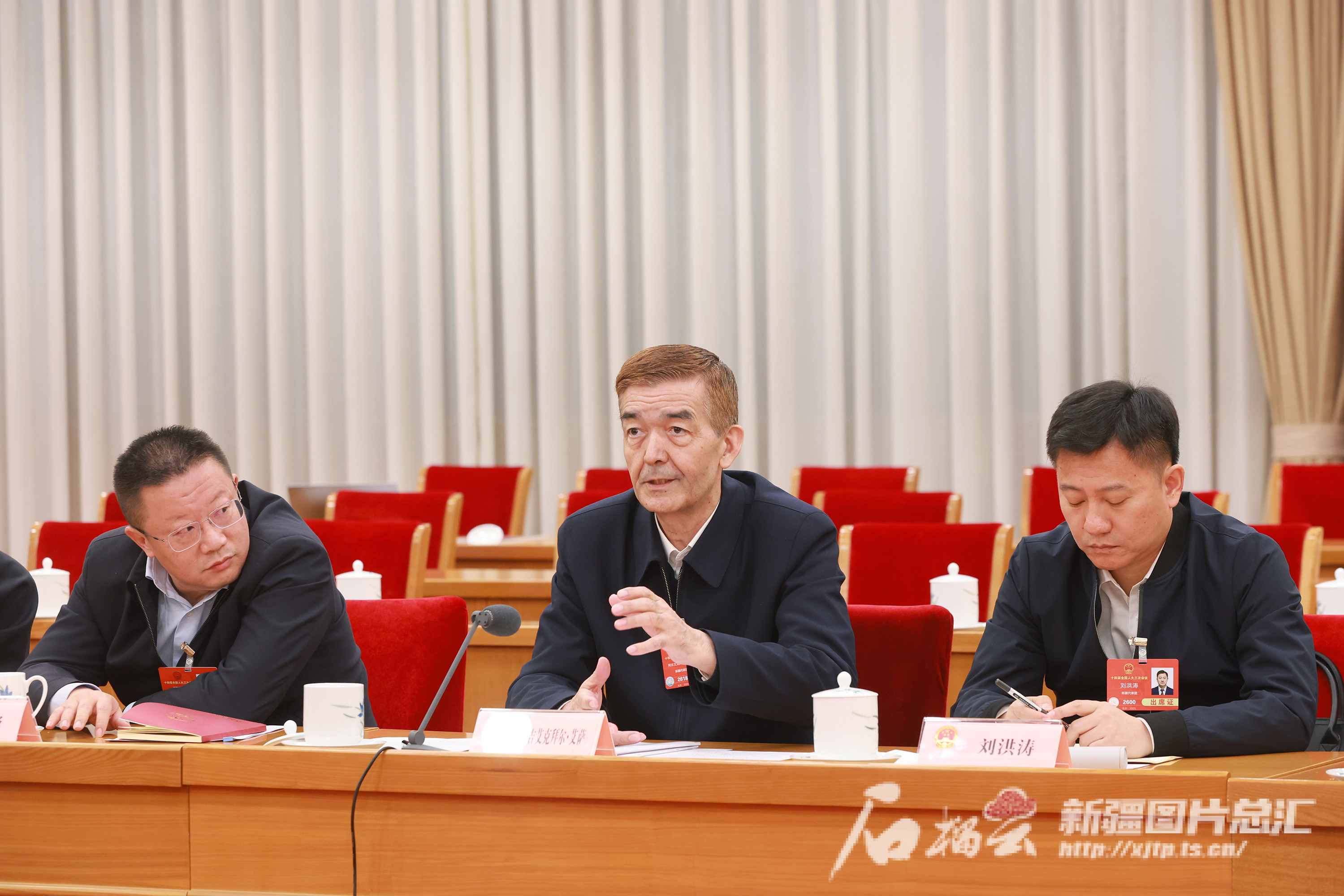 3月7日,参加十四届全国人大三次会议的新疆代表团审议全国人民代表大会和地方各级人民代表大会代表法修正草案。这是审议时阿吉艾克拜尔·艾萨代表(中)围绕推进教育对外开放深化国际学术交流和教育科研合作等内容发言。天山网-新疆日报记者 崔志坚摄