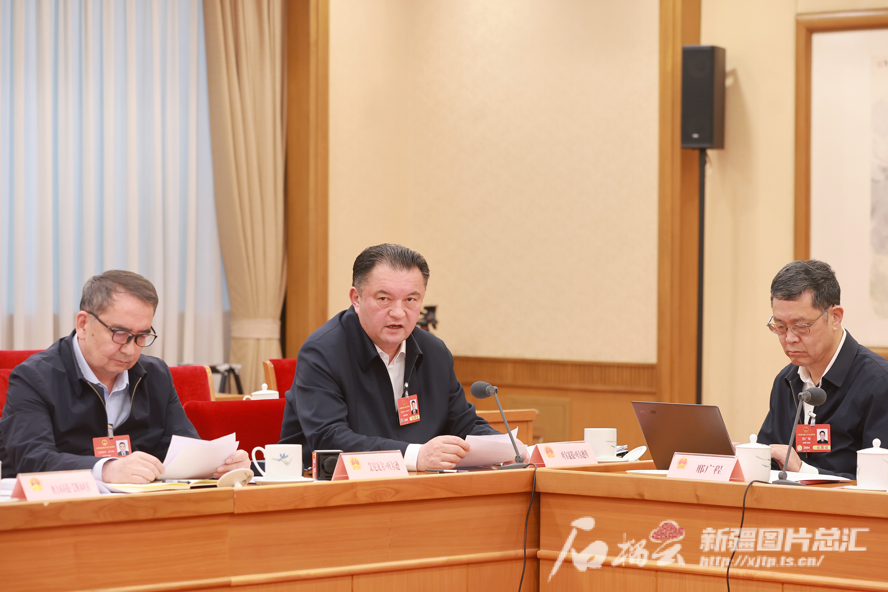 3月8日,参加十四届全国人大三次会议的新疆代表团审议全国人大常委会工作报告。这是叶尔夏提·吐尔逊拜代表(中)围绕系统开展全国人大代表培训工作等内容发言。天山网-新疆日报记者 崔志坚摄