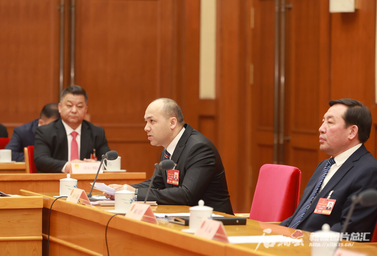 3月10日上午,参加十四届全国人大三次会议的新疆代表团审议全国人大常委会工作报告、最高人民法院工作报告、最高人民检察院工作报告。这是木沙·买买提代表(右二)围绕抓实代表履职培训丰富代表履职形式等内容发言。天山网-新疆日报记者 崔志坚摄