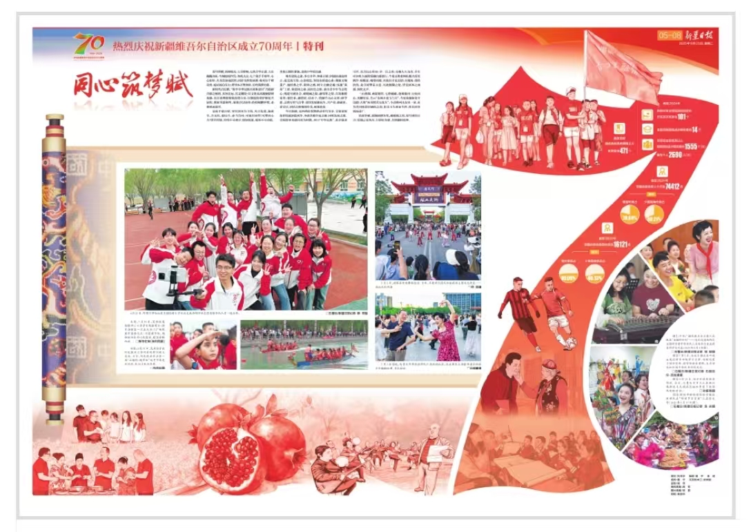 在庆祝新疆维吾尔自治区成立70周年的历史性节点,9月17日至9月23日,新疆日报重磅推出《方略领航赋》《磅礴新象赋》《绿水青山赋》《奔腾之路赋》《和风共沐赋》《同心筑梦赋》和《情暖天山赋》系列特刊,用汉赋雅韵这一承载千年的文学表达,郑重致敬自治区70年的发展成就。
