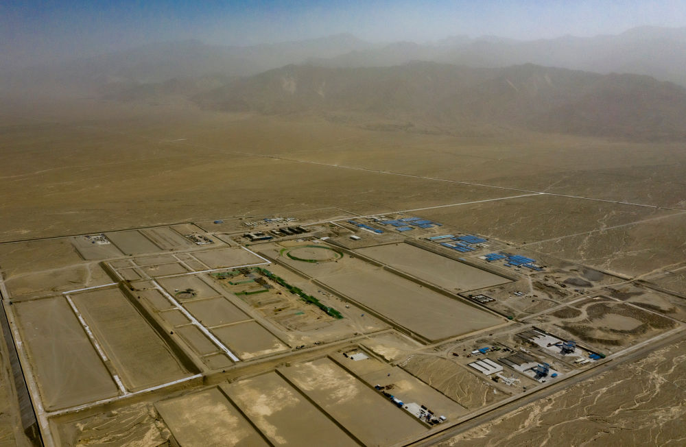 在新疆吐鲁番市鄯善县拍摄的1GW“光热+光伏”一体化项目(7月28日摄,无人机照片)。