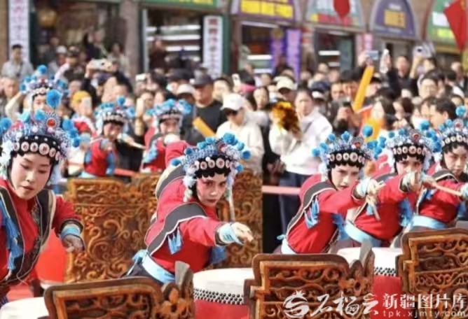 10月1日12时,新疆国际大巴扎步行街化身一片沸腾的海洋,来自陕西神木的非物质文化遗产代表性项目——“忠勇杨家鼓”在此激情上演,为八方来客献上一场气势磅礴的传统民俗盛宴。