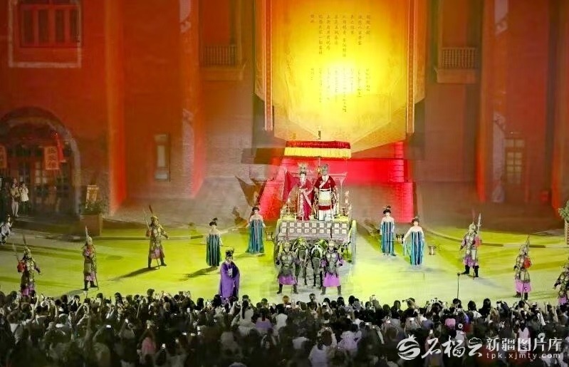 沉浸式演艺让历史文化“活”了起来。10月2日,和田约特干故城的夜间行浸式演艺《万方乐奏有于阗》人气爆棚。“凤鸣开城”仪式以鼓声启幕,灯光暗下后,身着传统服饰的演员载歌载舞,驼铃声与鼓乐声交织,瞬间将游客带入古于阗场景。中心广场上,游客们围成一圈欢快起舞。游客李薇带着女儿跟着节奏跺脚、转身,“孩子不仅学了跳舞,还通过讲解认识了张骞、班超等历史人物,这样的文化熏陶十分珍贵。”她开心地说。