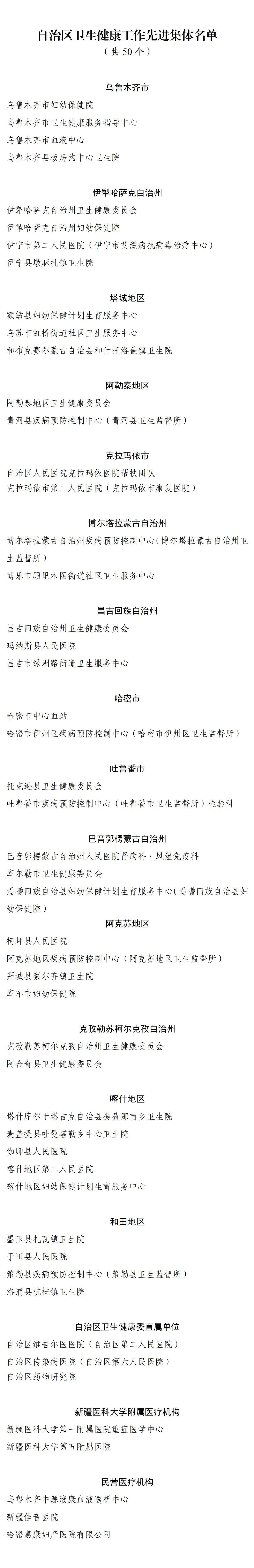新疆表彰50个卫生健康工作先进集体和100名先进个人