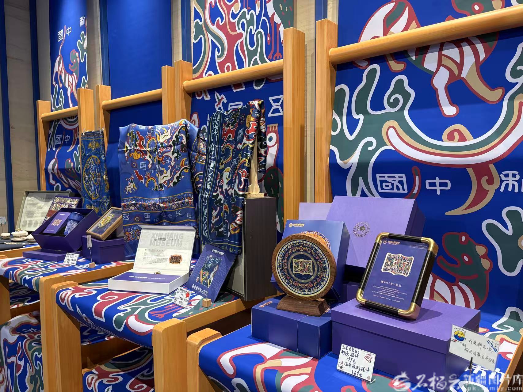 自治区博物馆展示的“五星出东方利中国”锦护臂的文创产品。天山网-新疆日报记者 玛依古丽・艾依提哈孜摄