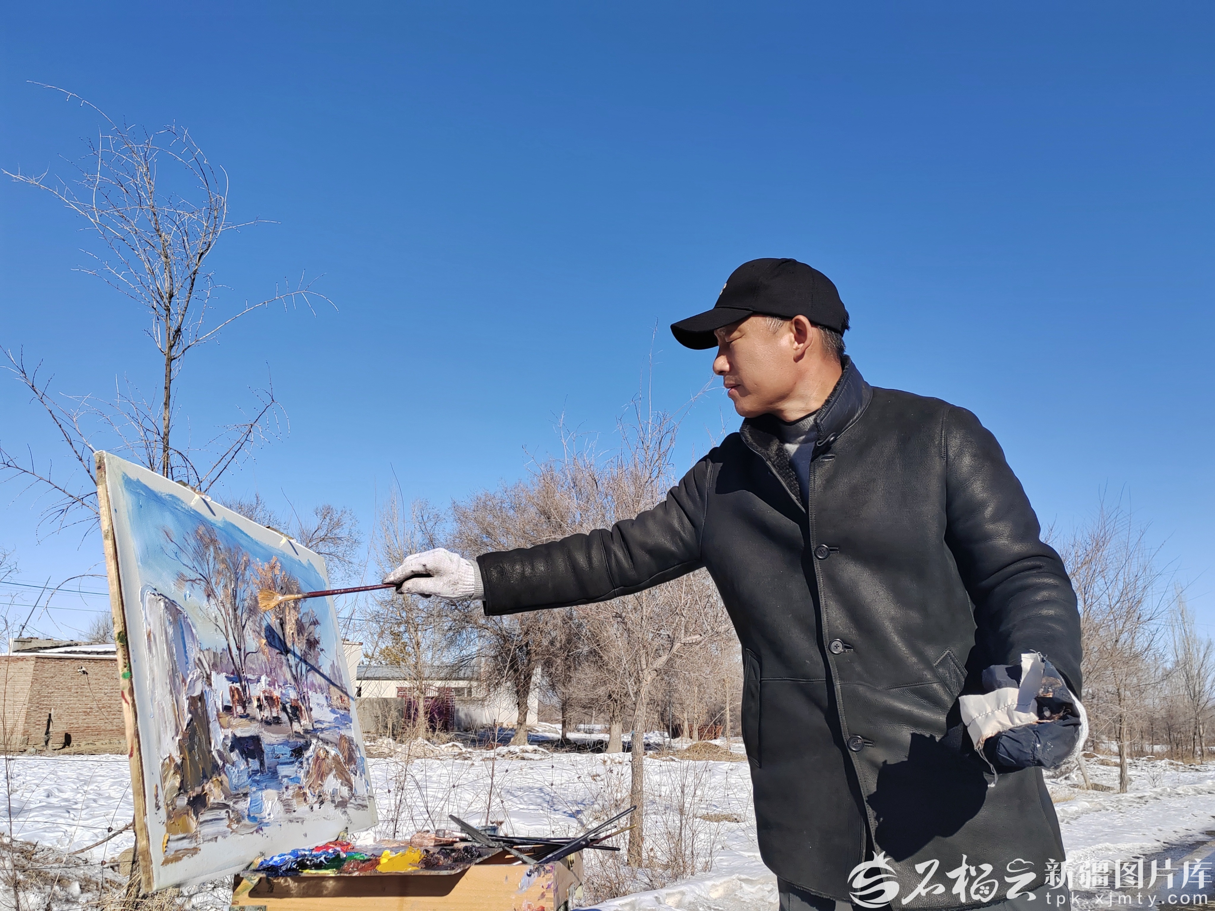 冬日里,吉木萨尔县新地乡小分子村宛如一幅静谧的水墨画卷,在天山脚下徐徐铺展。60岁的张新香刚收拾完家务,便铺开画纸,拿起画笔,勾勒家乡的冬日美景。“现在农闲了,我就跟着村里的画家们学画画,既能记录家乡的美景,也算是圆了小时候的梦。”这位曾因生计奔波而搁置画笔的农家妇女,直到艺术家们走进小分子村,才重新找回了对绘画的热情。如今,她已完成十余幅描绘家乡风光的画作。