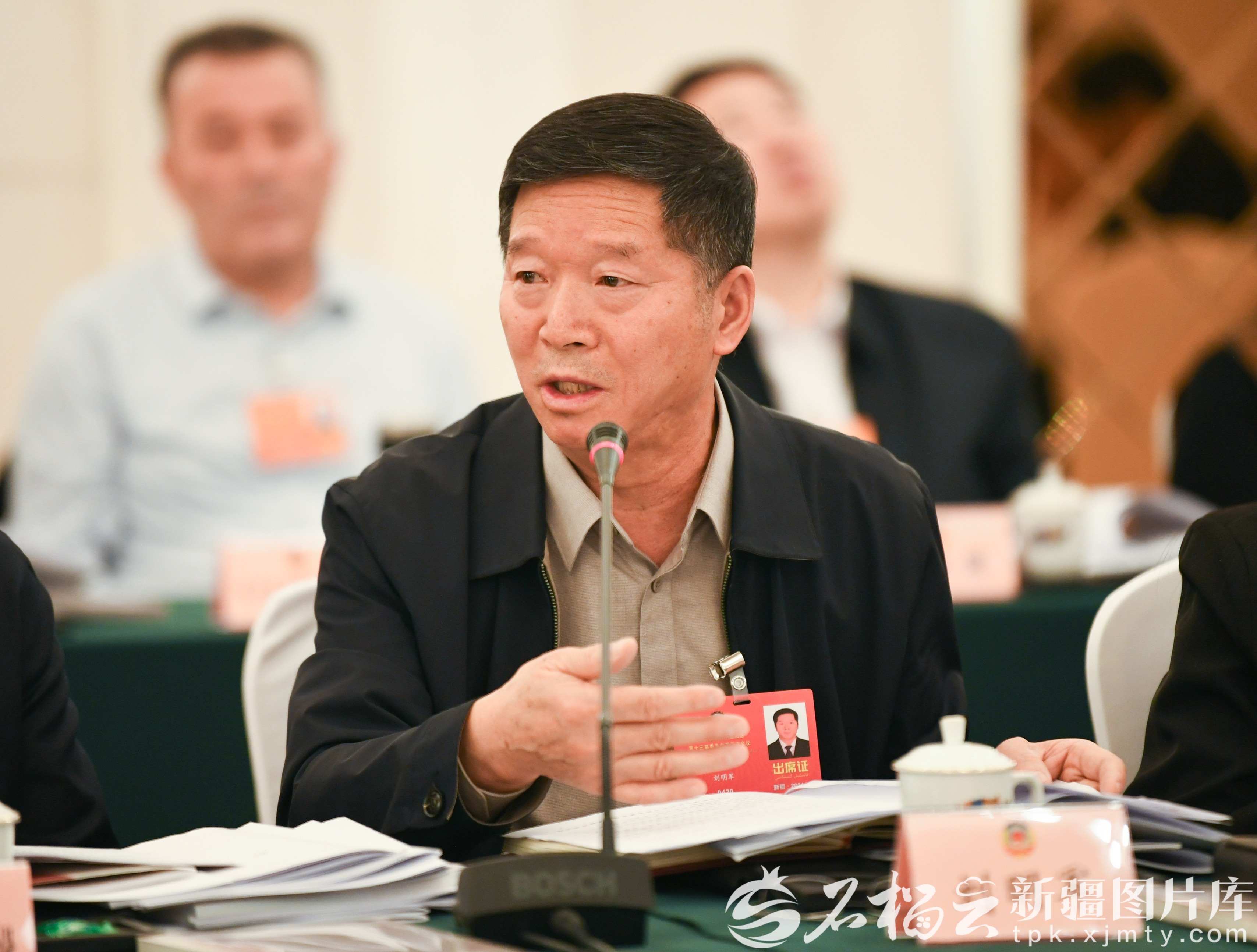 1月27日,经济界、工商联界委员分组讨论政府工作报告、自治区“十五五”规划纲要草案、计划草案报告和预算草案报告时,经济界高建军委员(中)围绕推动新疆农业科技高质量发展等内容发言。石榴云/新疆日报记者 约提克尔·尼加提摄